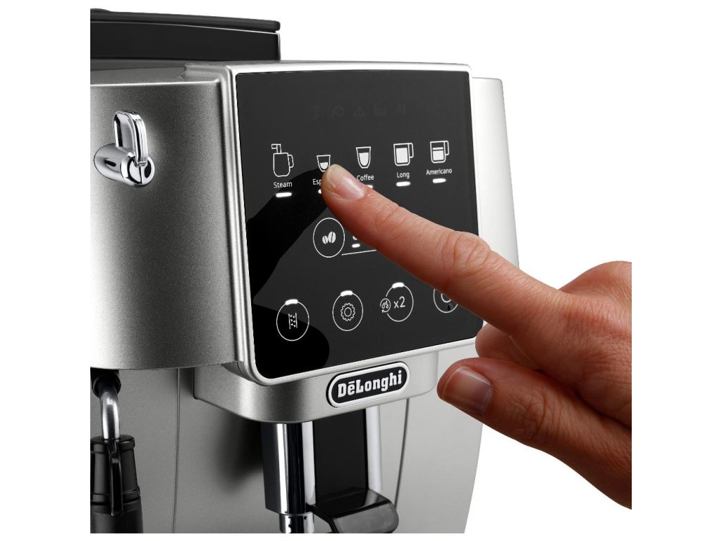 - Intuitivní ovládání: Užijte si jednoduchou přípravu kávy díky přehlednému dotykovému panelu. S 5 tlačítky přímé volby si Espresso, Kávu, Long nebo Americano připravíte jediným stiskem.