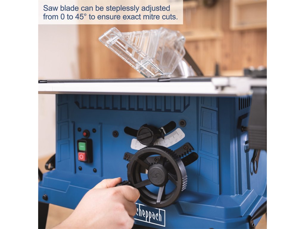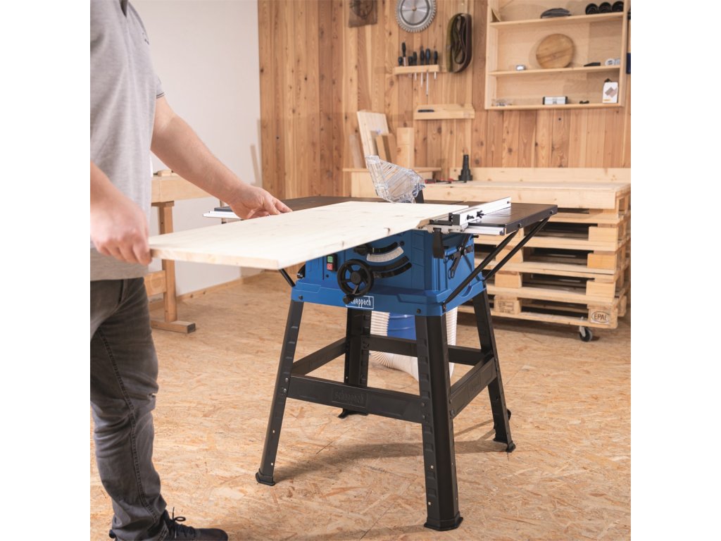Scheppach HS 254 je moderní a výkonná stolová pila určená pro přesné řezání trámů, kulatiny a desek. Konstrukčně i parametrově patří mezi špičku v segmentu malých stolových pil. Základ dokonalé ergonomie je ve velmi stabilním a vysokém podstavci, který umožňuje dostatečně vzpřímenou pracovní pozici. Na to navazují snadno ovladatelné ovládací prvky, jako jsou velké otočné kolo pro nastavování výšky kotouče nebo nezávislé ovládání sklonu kotouče, a to až do úhlu 45°. Díky dostatečně silnému motoru 2200 W můžete na pile provádět všechny obvyklé druhy podélných i složených řezů v měkkém i tvrdém dřevu. TCT kotouč má 24 tvrzených zubů a maximální prořez má skvělou hodnotu 85 mm. Ve standardní výbavě pily nechybí integrovaná stupnice a kvalitní boční doraz s velmi pevným systémem upnutí, úhlové pravítko s rozsahem -60° do +60°, bezpečnostní kryt řezného kotouče, nástavec na odsávání pilin, tlačná tyč a další řezný TCT kotouč se 48 zuby na jemné řezy. Neocenitelným pomocníkem je potom možnost bočního (vpravo i vlevo) rozšíření stolu, díky kterému můžete pracovat i s velkými obrobky.