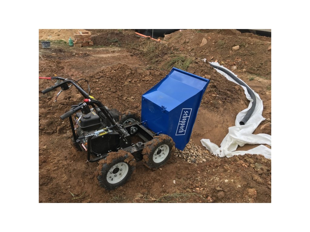 Kolový přepravník Scheppach DP 3000 Vám umožní velmi pohodlnou přepravu až 300 kg sypkých i pevných materiálů i na velmi špatně přístupných místech. Skvěle se hodí na přepravu zeminy, písku, štěrku, kamenů, dlažby, cihel, ale třeba i dřeva nebo trávy.