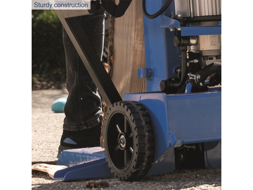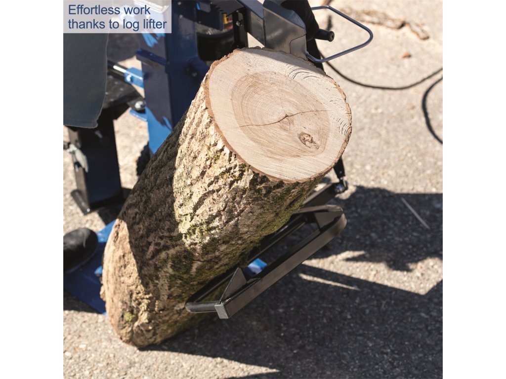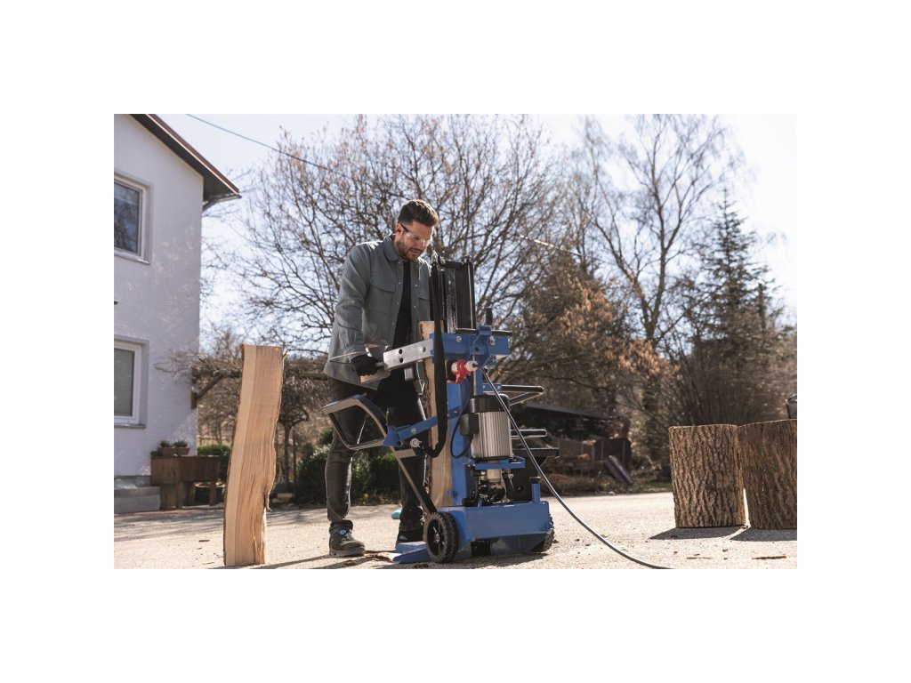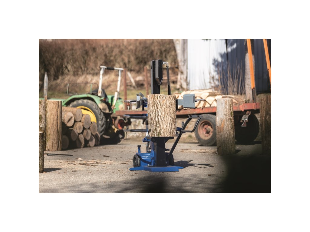 Na stroji naleznete systém rychlého a automatického návratu pístu, bezpečnostní obouruční ovládání, nízkou základnu s rozšířením pro dokonalou stabilitu, přídavný výkyvný stolek pro štípání polen různé délky v různých výškách, bezpečnostní ramena chránící poleno proti vypadnutí, integrovaný zvedák těžkých polen pro snadnou manipulaci i s těžkými kmeny a štípací klín, který si poradí i s poleny o průměru až 380 mm.