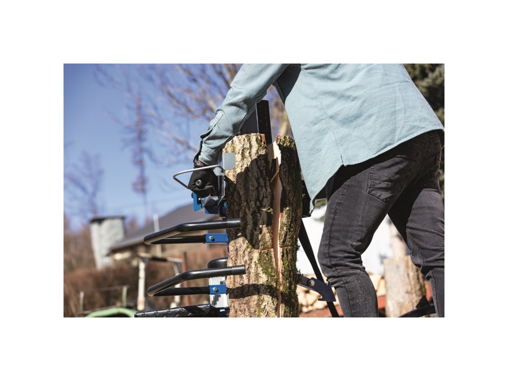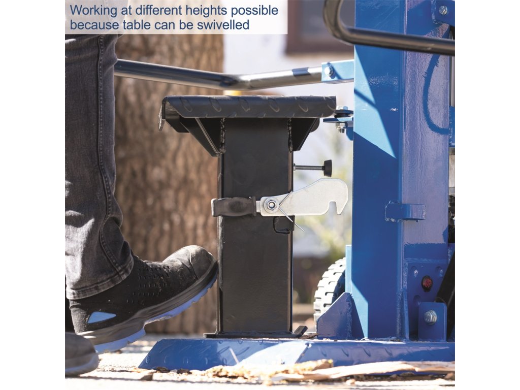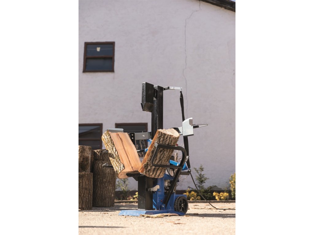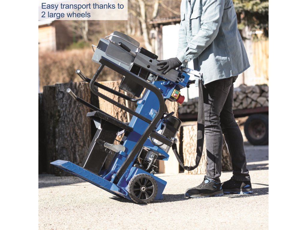 Na stroji naleznete systém rychlého a automatického návratu pístu, bezpečnostní obouruční ovládání, nízkou základnu s rozšířením pro dokonalou stabilitu, přídavný výkyvný stolek pro štípání polen různé délky v různých výškách, bezpečnostní ramena chránící poleno proti vypadnutí, integrovaný zvedák těžkých polen pro snadnou manipulaci i s těžkými kmeny a štípací klín, který si poradí i s poleny o průměru až 380 mm.