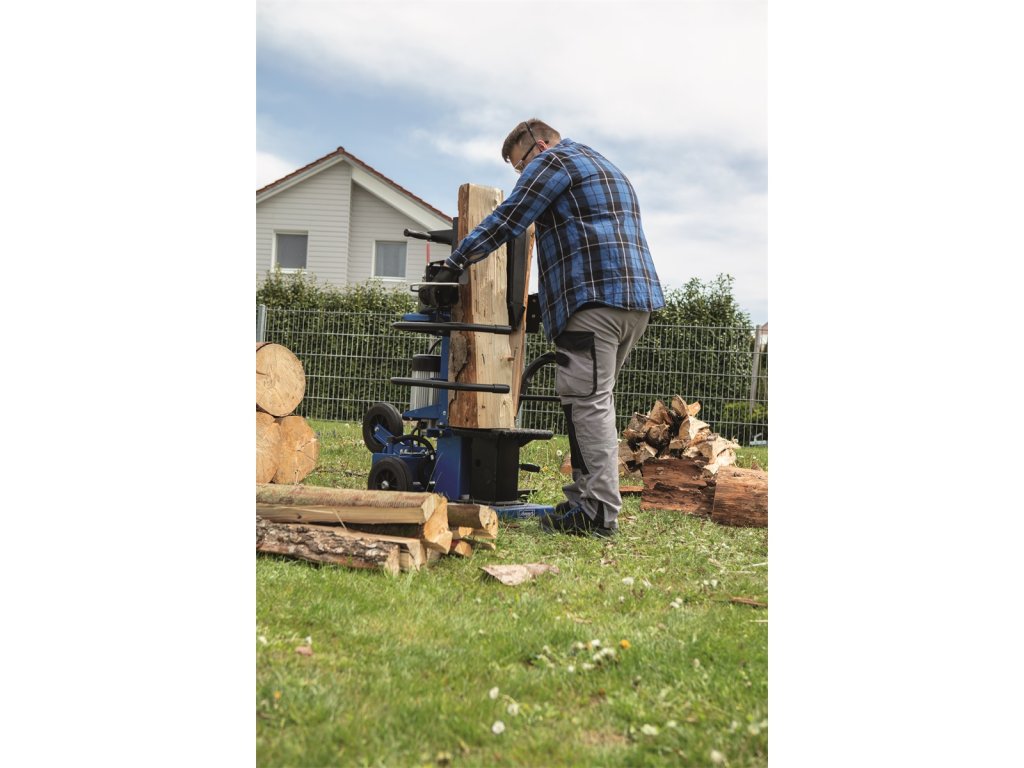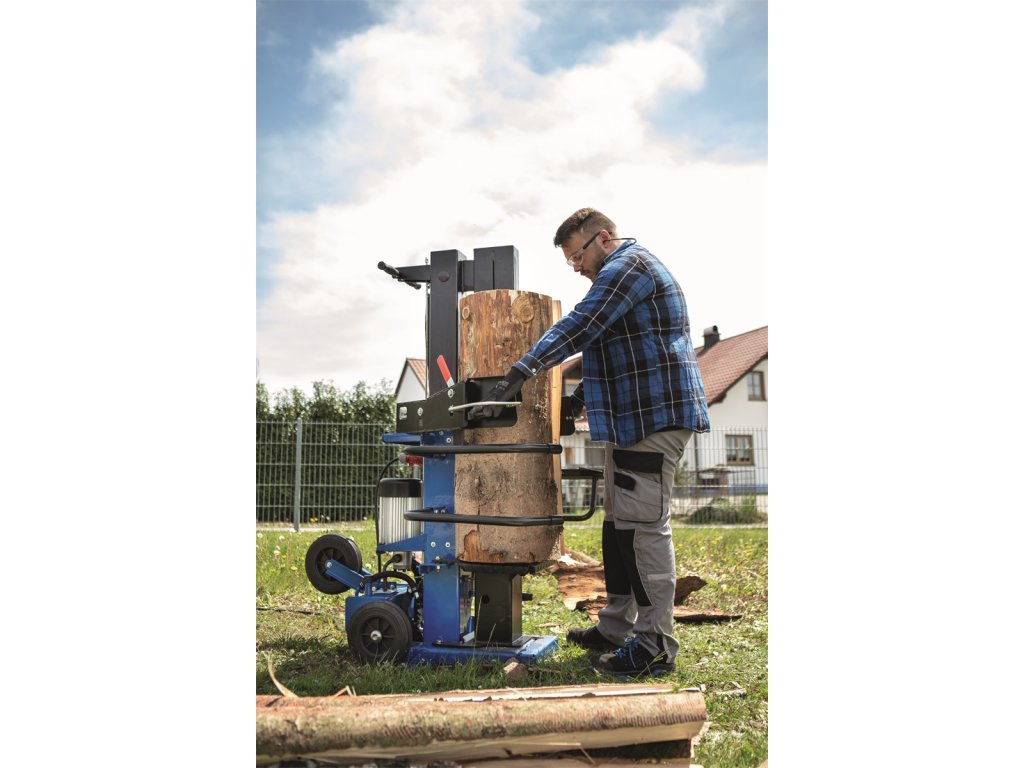 Na stroji naleznete systém rychlého a automatického návratu pístu, bezpečnostní obouruční ovládání, nízkou základnu s výsuvným rozšířením pro dokonalou stabilitu, přídavný výkyvný stolek pro štípání polen různé délky v různých výškách, bezpečnostní ramena chránící poleno proti vypadnutí, integrovaný zvedák těžkých polen pro snadnou manipulaci i s těžkými kmeny a mohutný rozšiřovací štípací klín, který si poradí i s poleny o průměru až 450 mm.